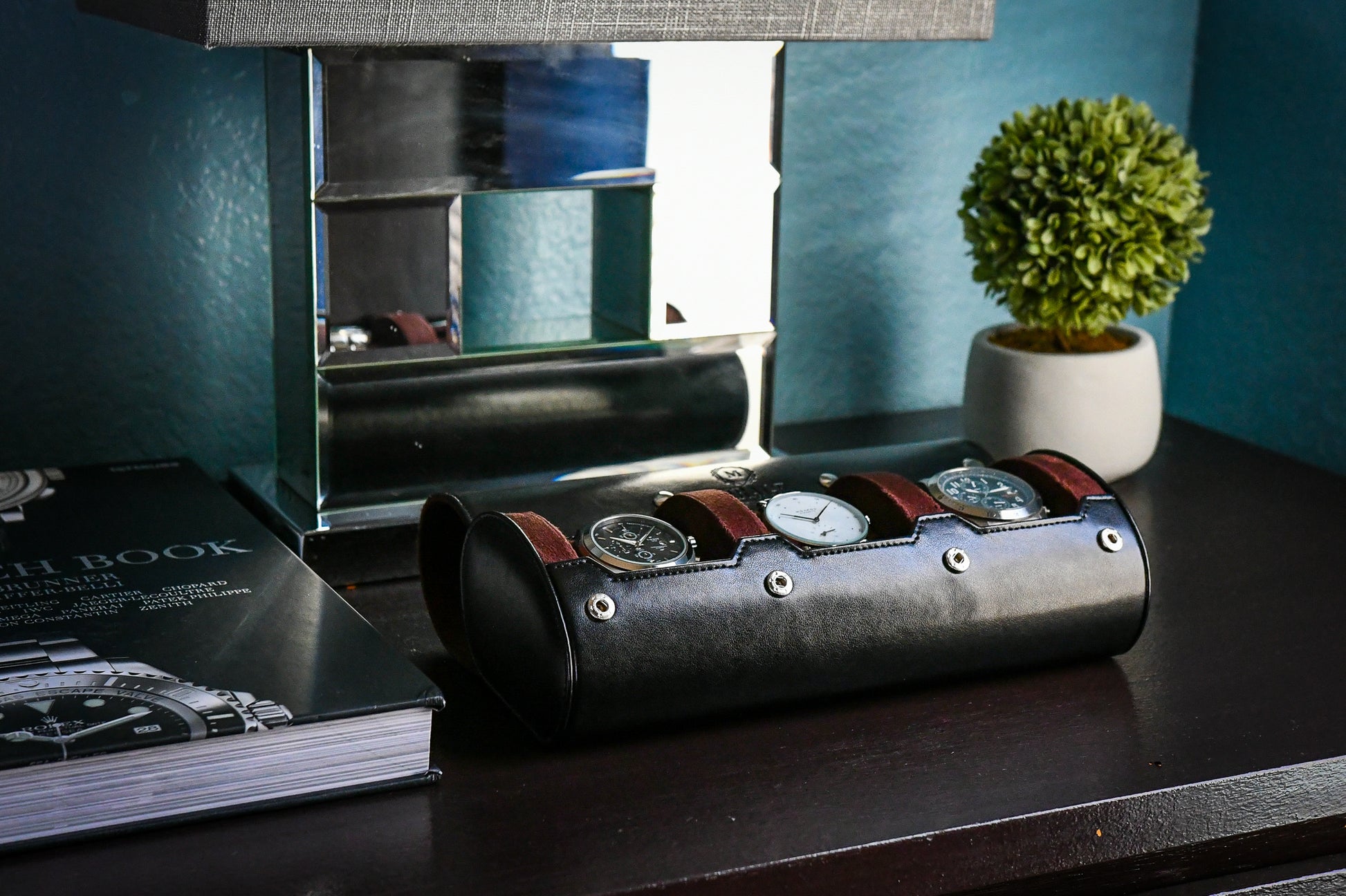 For travel or display, elevate your collection with a case that reflects the sophistication of your most treasured timepieces. The rich Jade black vegan leather offers a subtle yet refined elegance, while the plush suede interior cushions each watch in gentle, protective comfort. Meticulously designed with sliding cushions for effortless access and perfect organization, this case marries timeless style with superior functionality. Delicate accent stitching further enhances its charm, making it an exquisite blend of luxury and practicality.