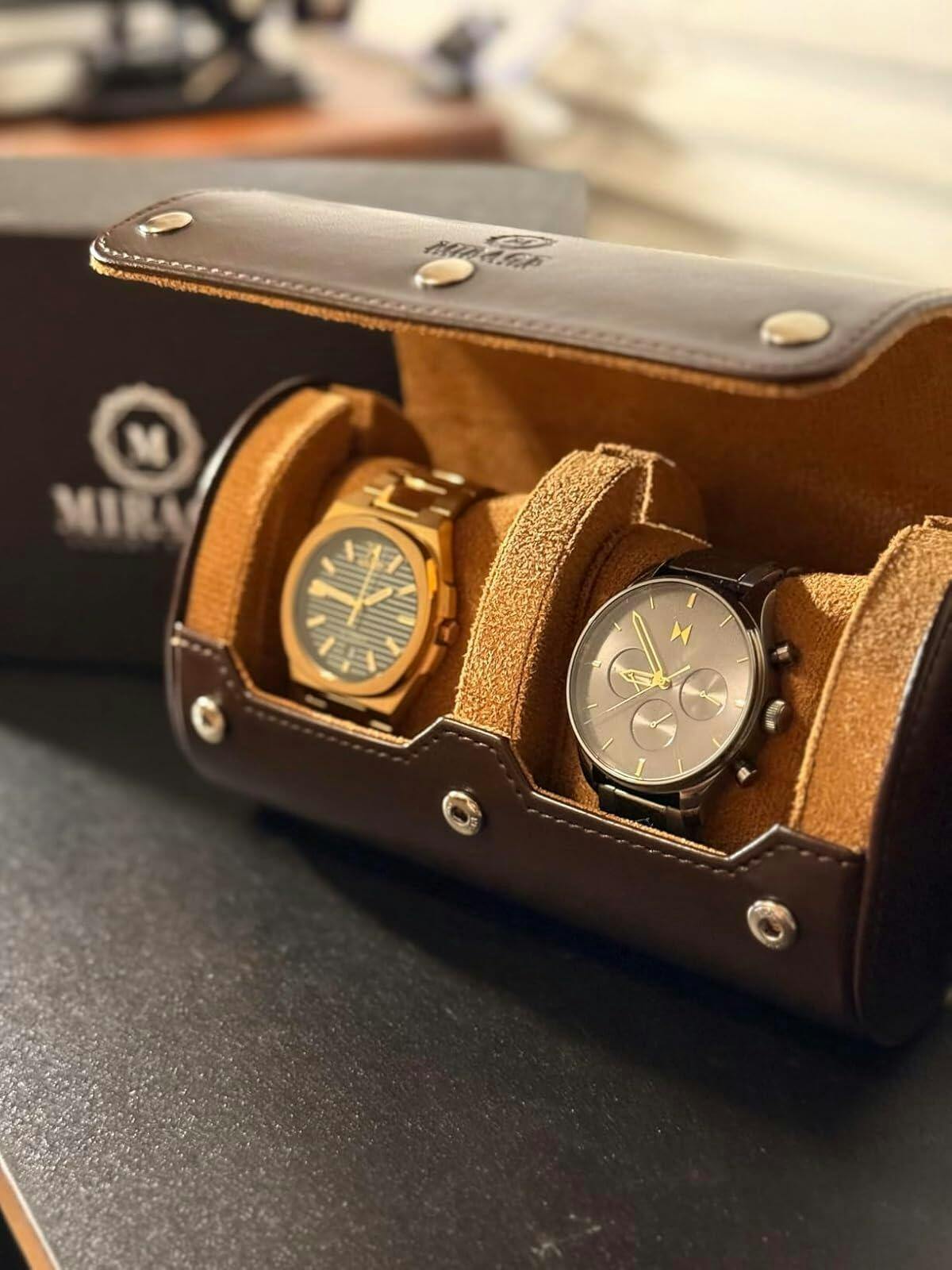 Whether for travel or display, elevate your experience knowing your cherished pieces are securely housed in a case that mirrors the timeless beauty of your watches. The Espresso Brown vegan leather exudes understated elegance, while the plush suede lining cradles your timepieces in soft, protective luxury. Each compartment is thoughtfully crafted with sliding cushions, allowing easy access and a flawless arrangement. Refined accent stitching enhances the case’s allure, creating a stunning balance of style and practicality.