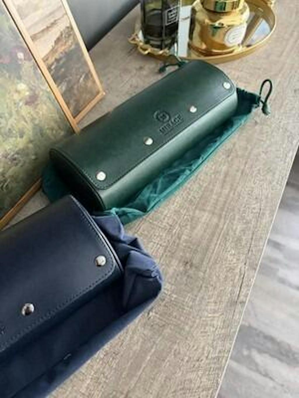 • Midnight blue vegan leather 3-watch roll