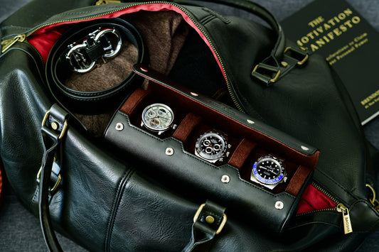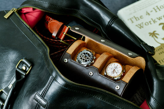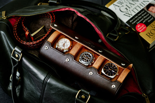 3-Watch Roll Cow Leather & Marble Watch Stand - Display with Passion & Travel with Pride.
