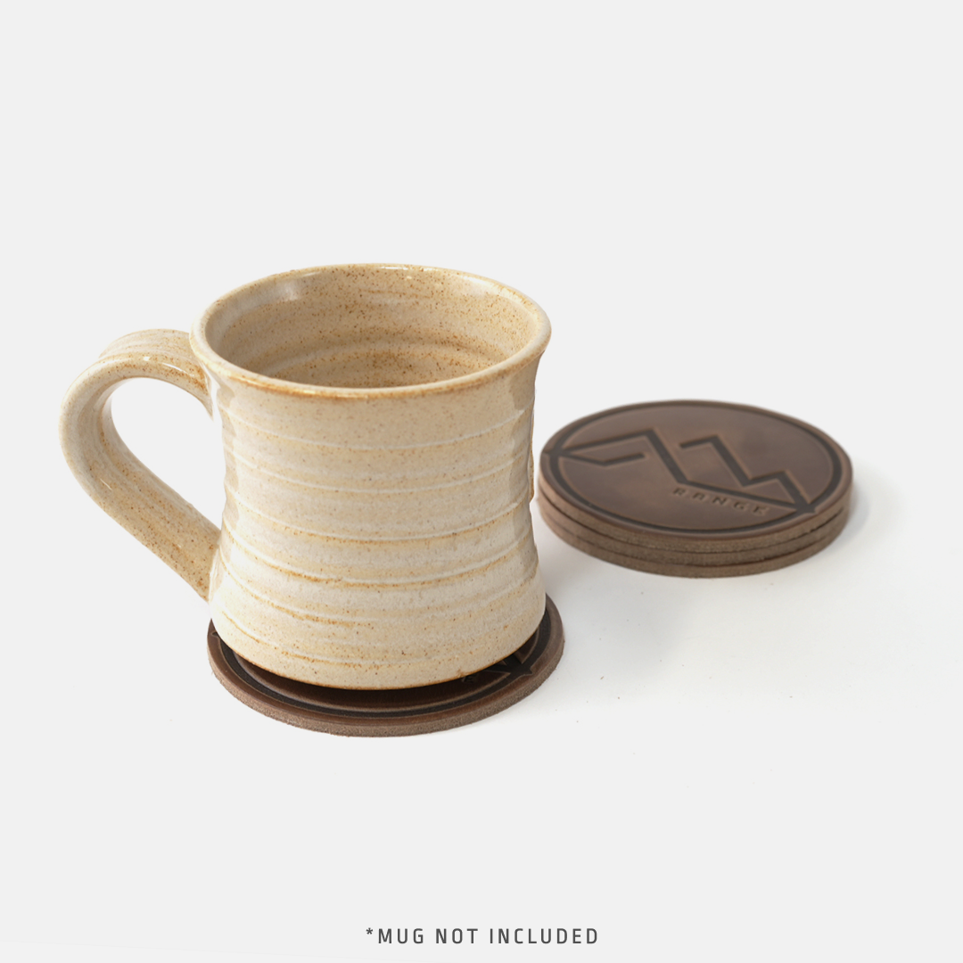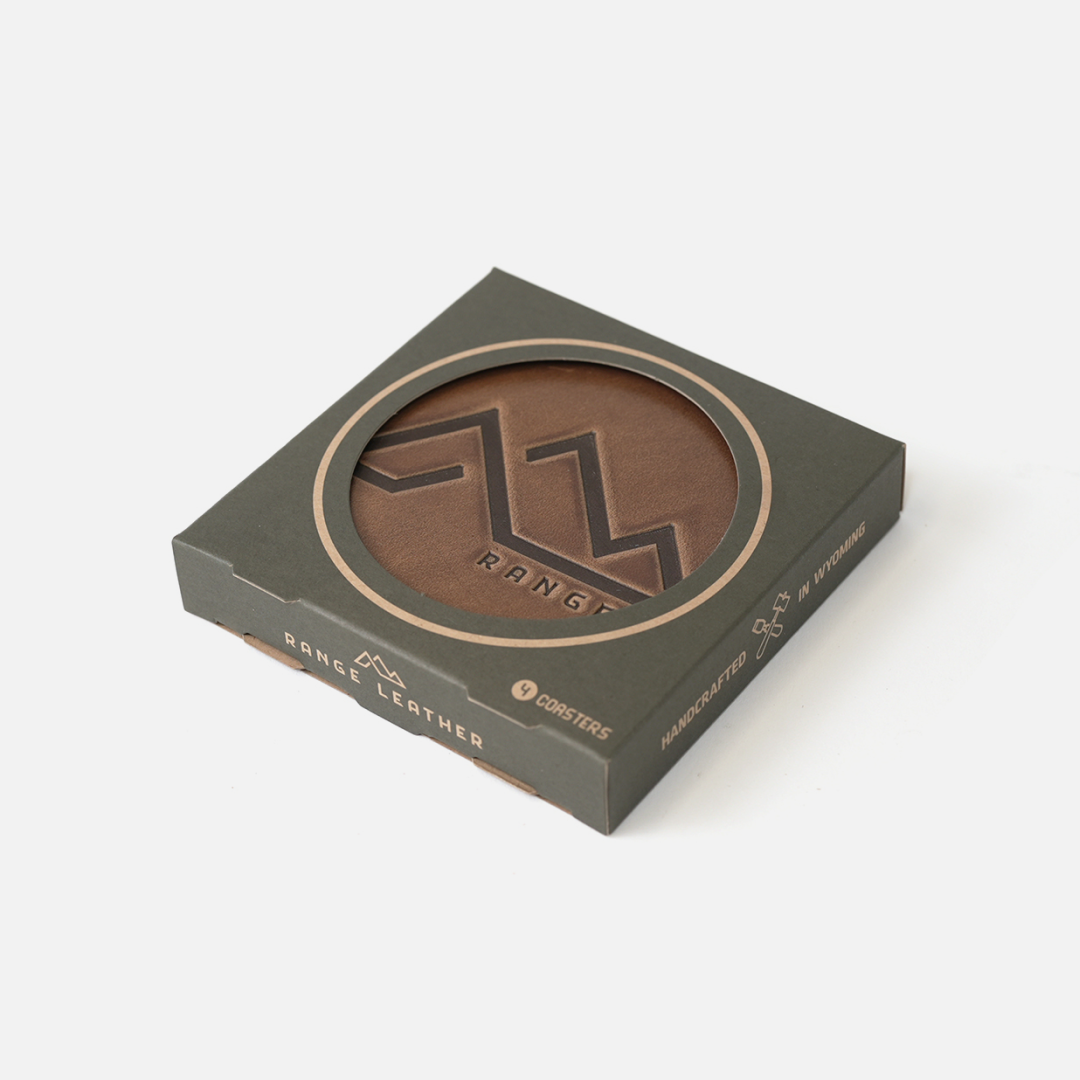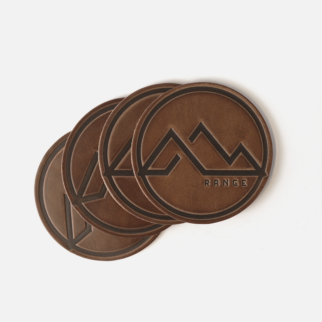 Embrace the rugged charm of the American West with our Range Mountain Leather Coasters. Elevate your home or office decor with impressive heat-stamped detail and full-grain durability.