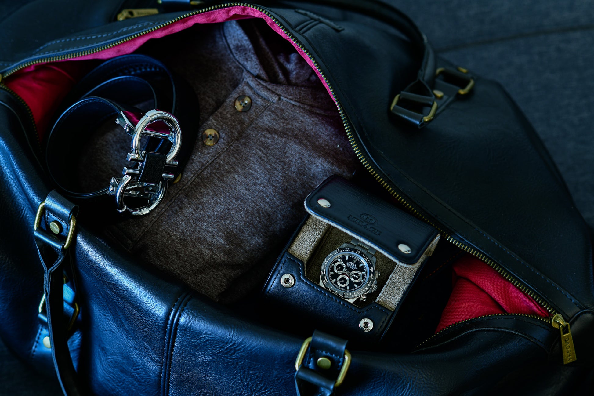 - Sable black full-grain cow leather 1-watch roll