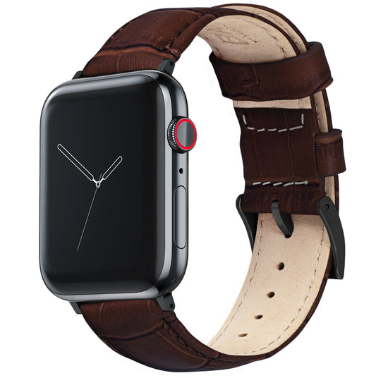 Apple Watch Coffee Brown Alligator Grain Leather Watch Band