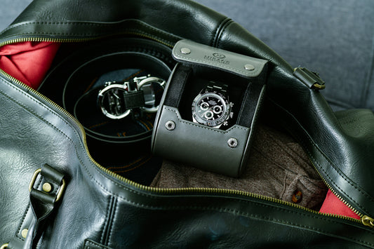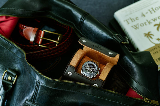 3-Watch Roll Cow Leather & Marble Watch Stand - Display with Passion & Travel with Pride.