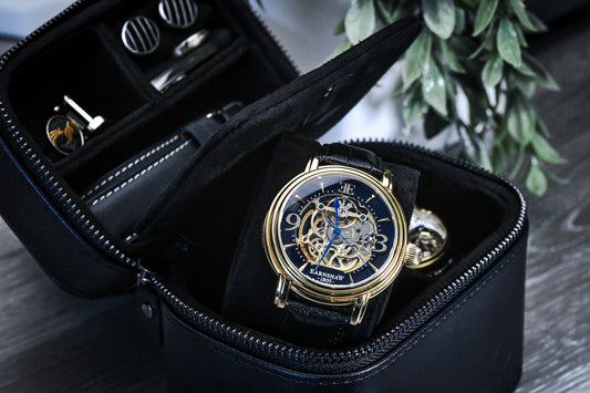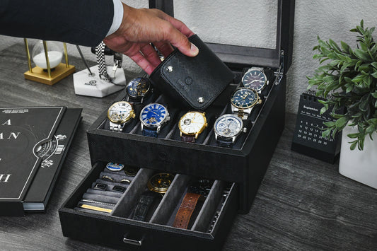 Watch and Jewelry Travel Case - Genuine Leather - Obsedian Black
