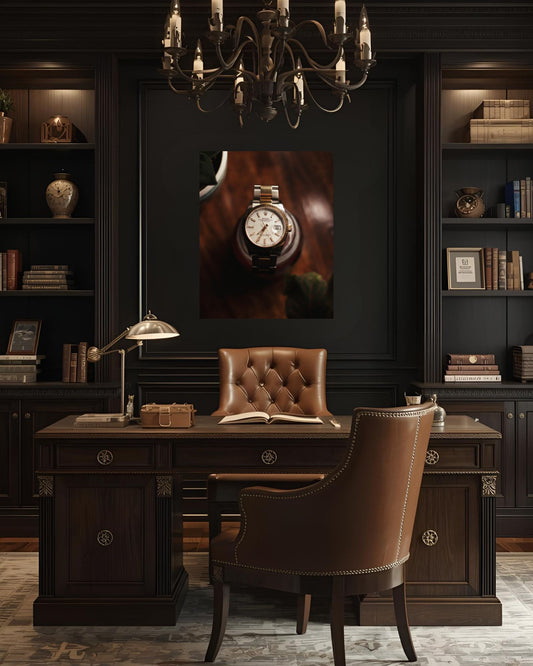 "Celebrate the artistry of time beyond the wrist. The Mirage Horology Series transforms horology-inspired designs into gallery-grade aluminum and wood prints, crafted for collectors who value elegance, legacy, and sophistication. Each piece is limited to a numbered run, blending modern precision with timeless warmth. Whether displayed in your study, office, or collector’s lounge, this series brings the heritage of watchmaking into your everyday spaces."