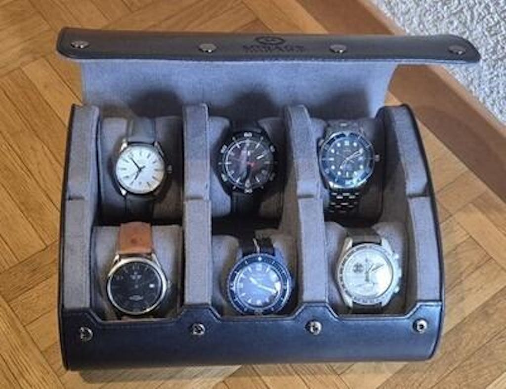 - Midnight blue vegan leather 6-watch case