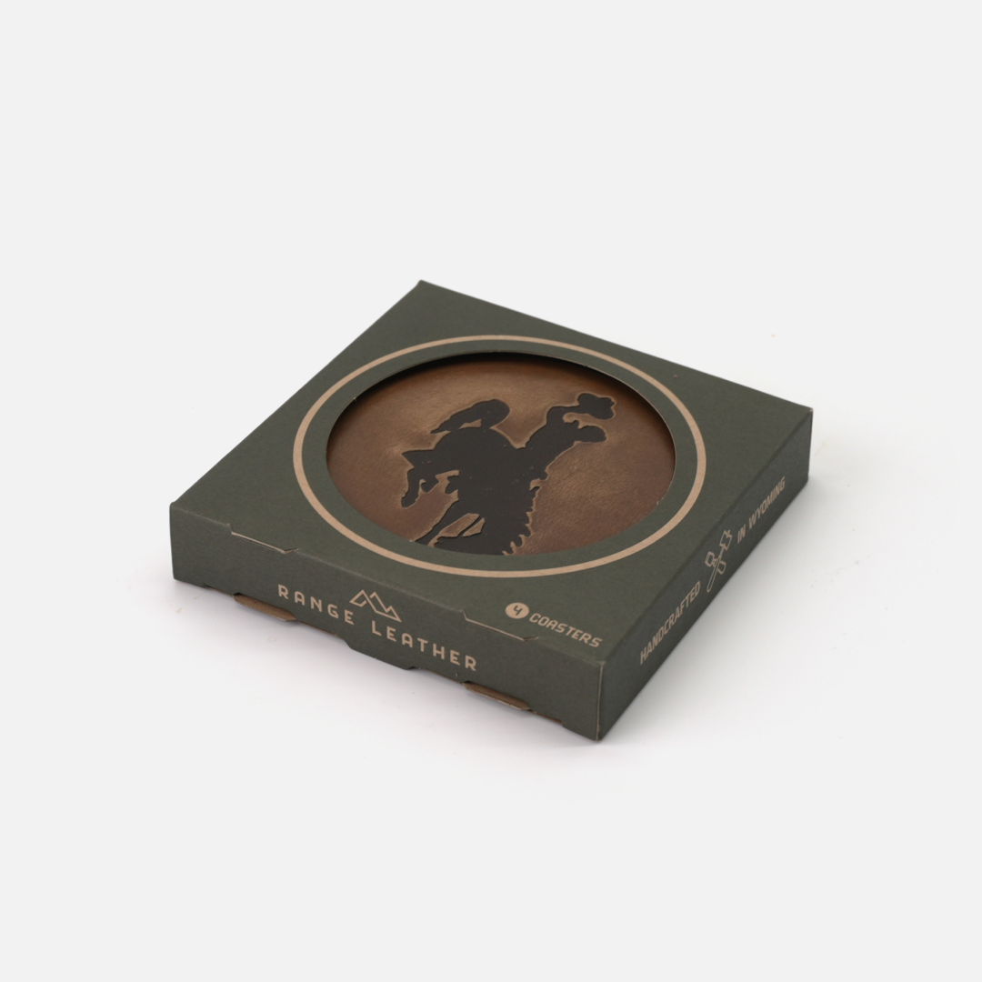 Celebrate your Cowboy pride with our University of Wyoming Steamboat Leather Coaster. Meticulously crafted from full-grain 8oz Horween Chromexcel leather, this coaster features a dimensional heat-stamped Steamboat logo that preserves the integrity of the leather while offering superior liquid resistance. As beautiful as it is functional, this heirloom-quality piece develops a rich patina over time, telling the story of your Wyoming spirit with every use.