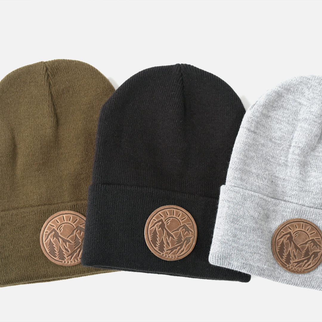 Everything you love about mountain culture with a hand-drawn aesthetic heat stamped into full grain leather. This beanie is made in the USA with 100% acrylic rib knit fabric.